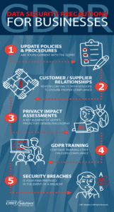 Here are five data security precautions businesses need to consider when complying with the GDPR: