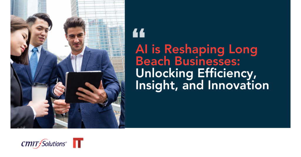 Whether you’re a startup, nonprofit, or growing enterprise, CMIT Solutions of Long Beach is here to help you secure your future with the power of AI. Our team delivers tailored services, from Long Beach IT Management to Cybersecurity Solutions Long Beach and beyond.
